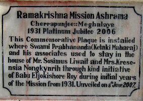 the Ramakrishna Mission Ashrama, Cherrapunjee was laid by him on 20th October 1952.